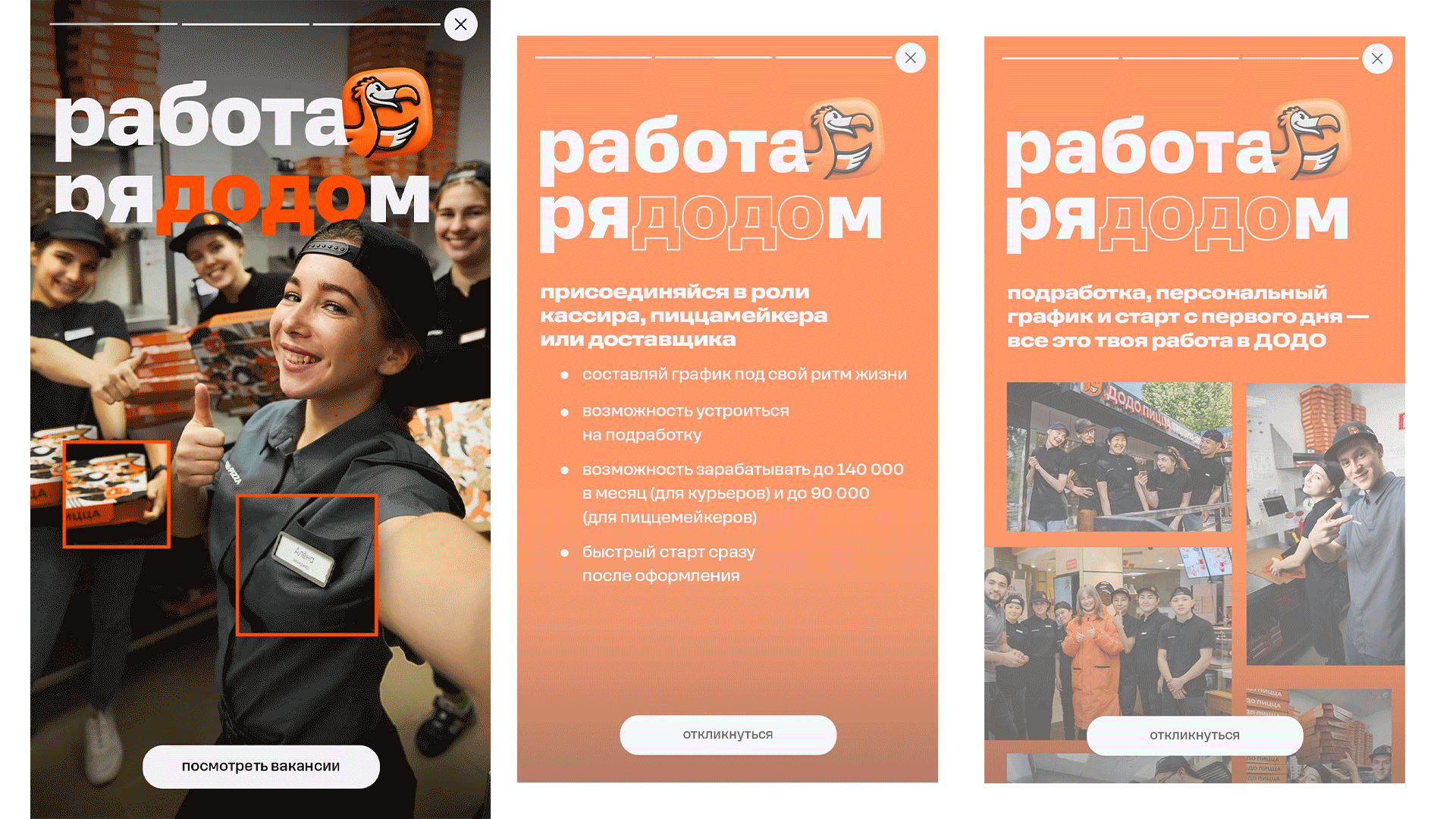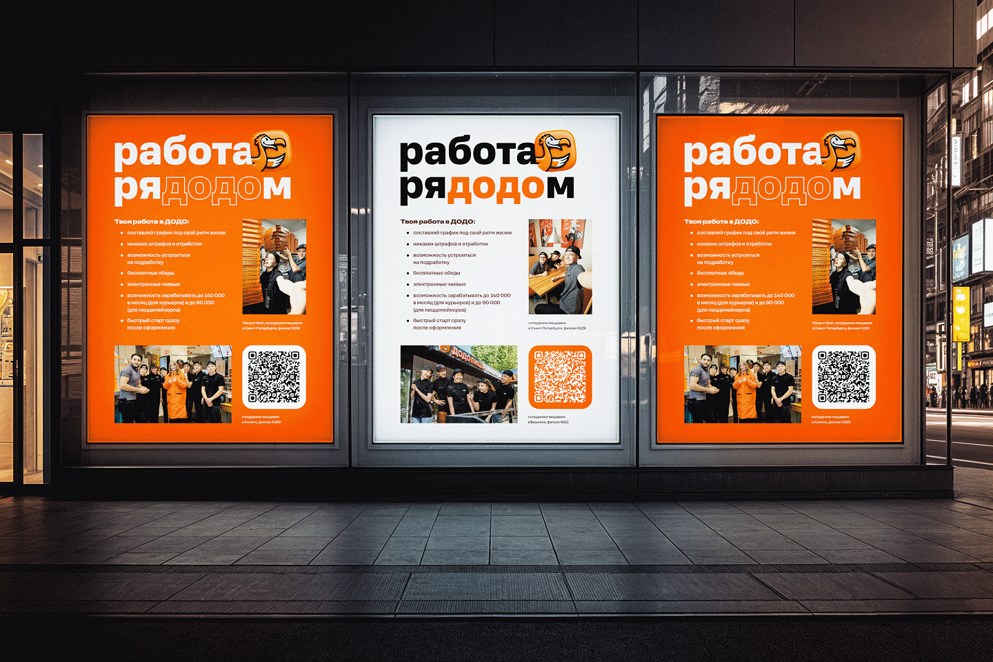 редизайн рекламной кампании по набору сотрудников для сети пиццерий Додо. как